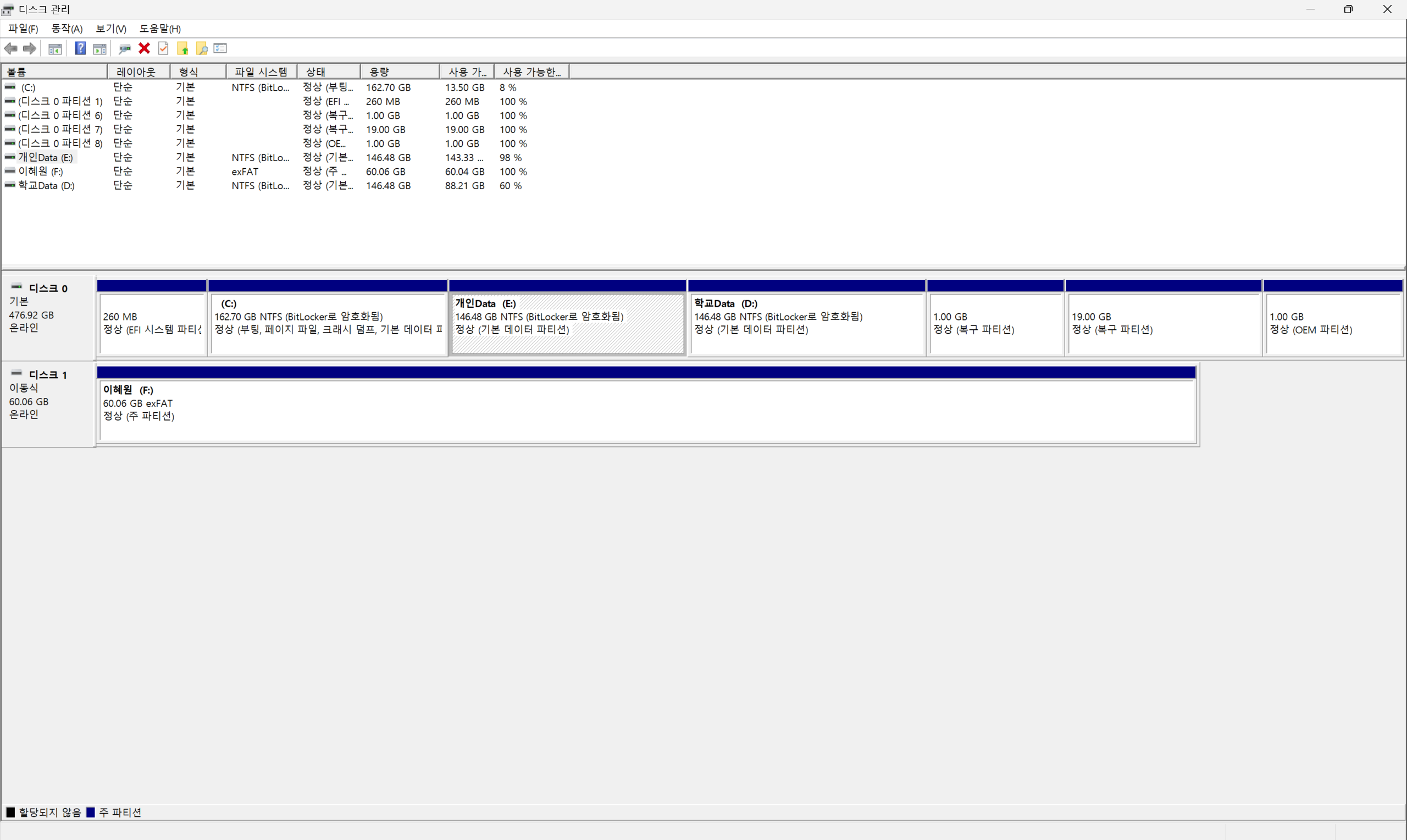 디스크 1에 파티션 2개.