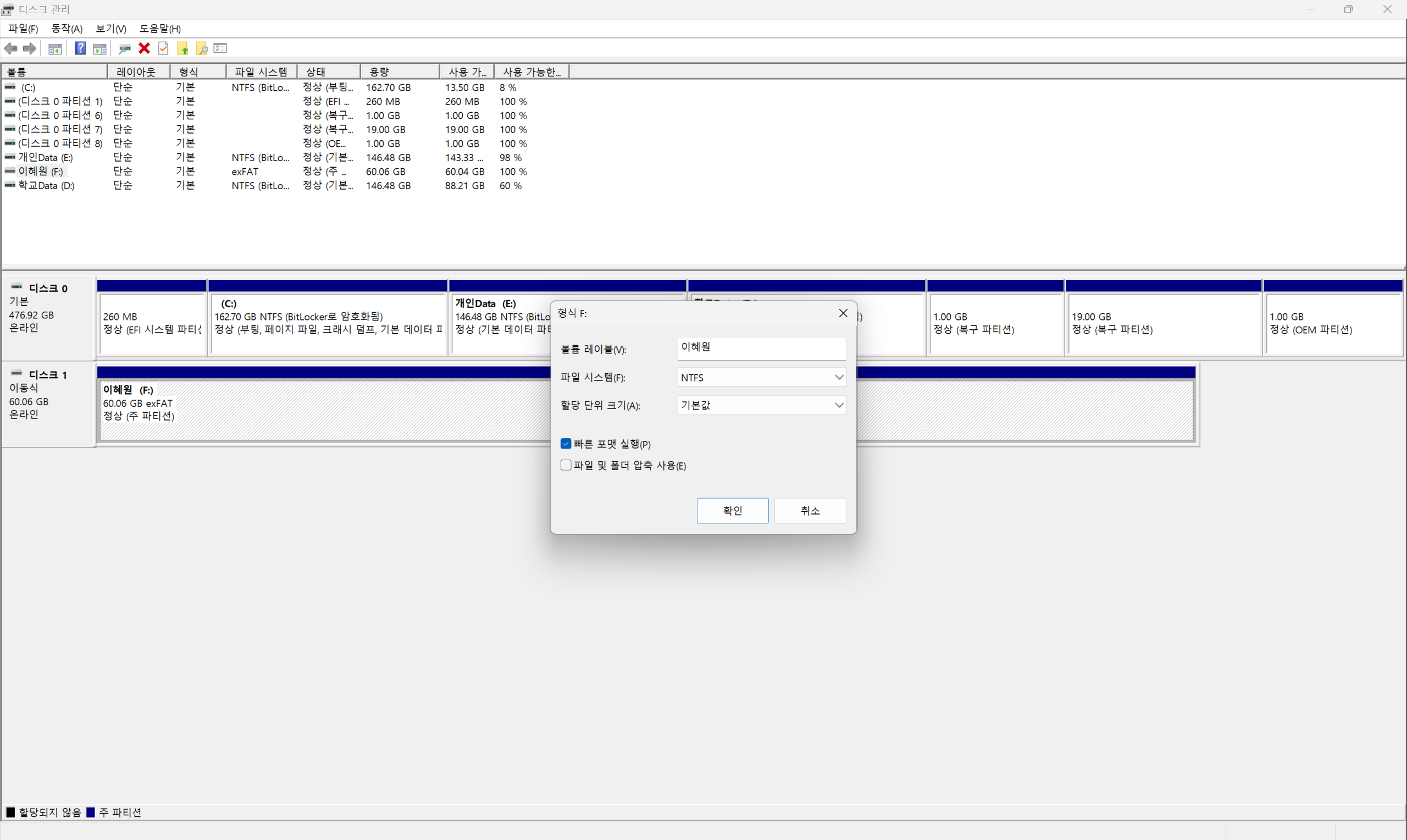 3. 볼륨을 포맷(Format)하여 파일 시스템(FAT32, NTFS 등) 지정