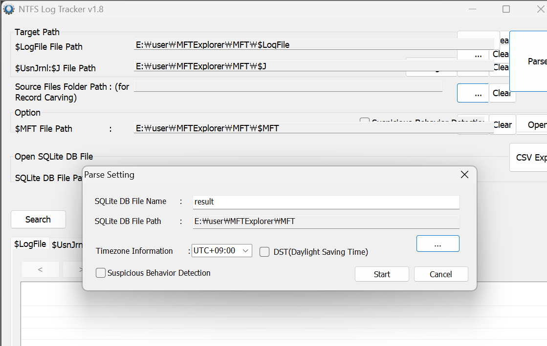 4. 추출한 파일들 NTFS Log Tracker 에 넣어주기