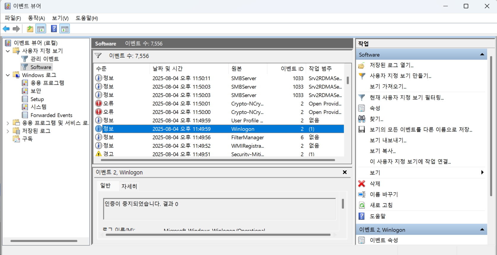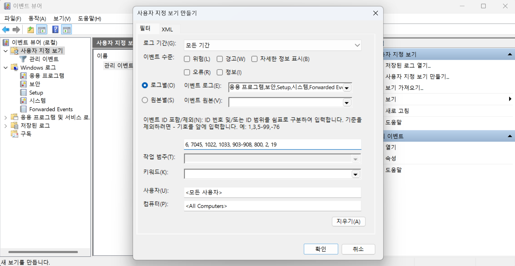 • 이벤트 뷰어 “사용자 지정 보기 만들기”